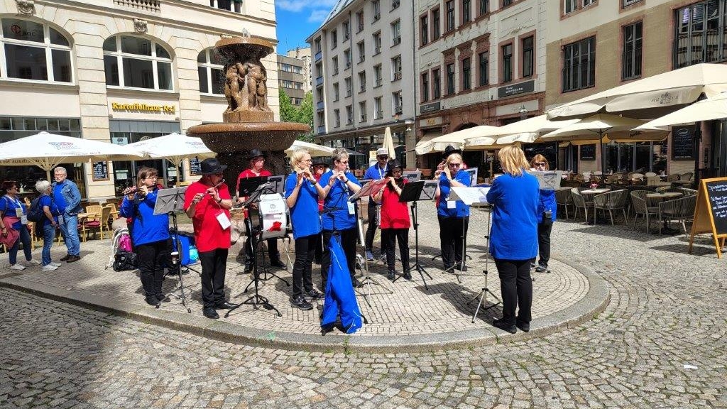 Konzert des TuS-Spielmannszugs mit befreundeten Teilnehmern anderer Orchester in der Leipziger Innenstadt