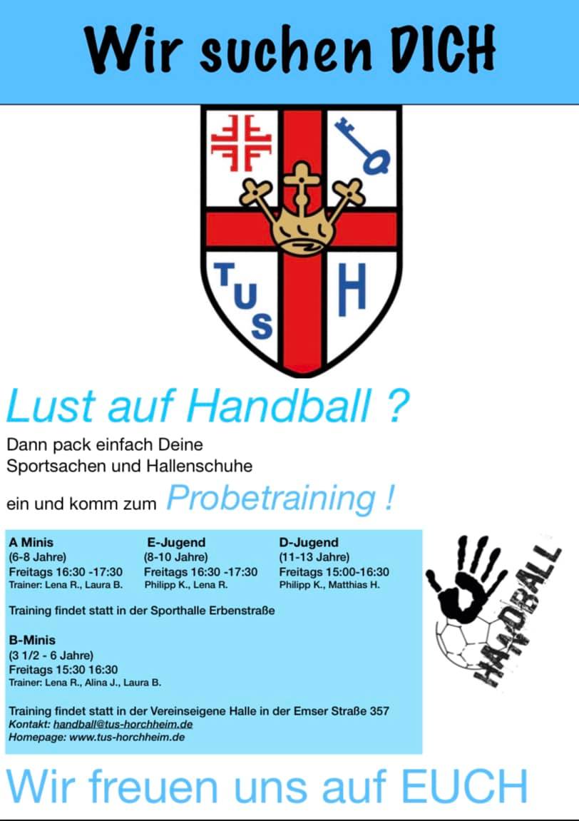 Du bist zwischen 3,5 und 13 Jahren und hast Lust Handball zu spielen?Dann melde dich bei uns und komm zum Probetraining!