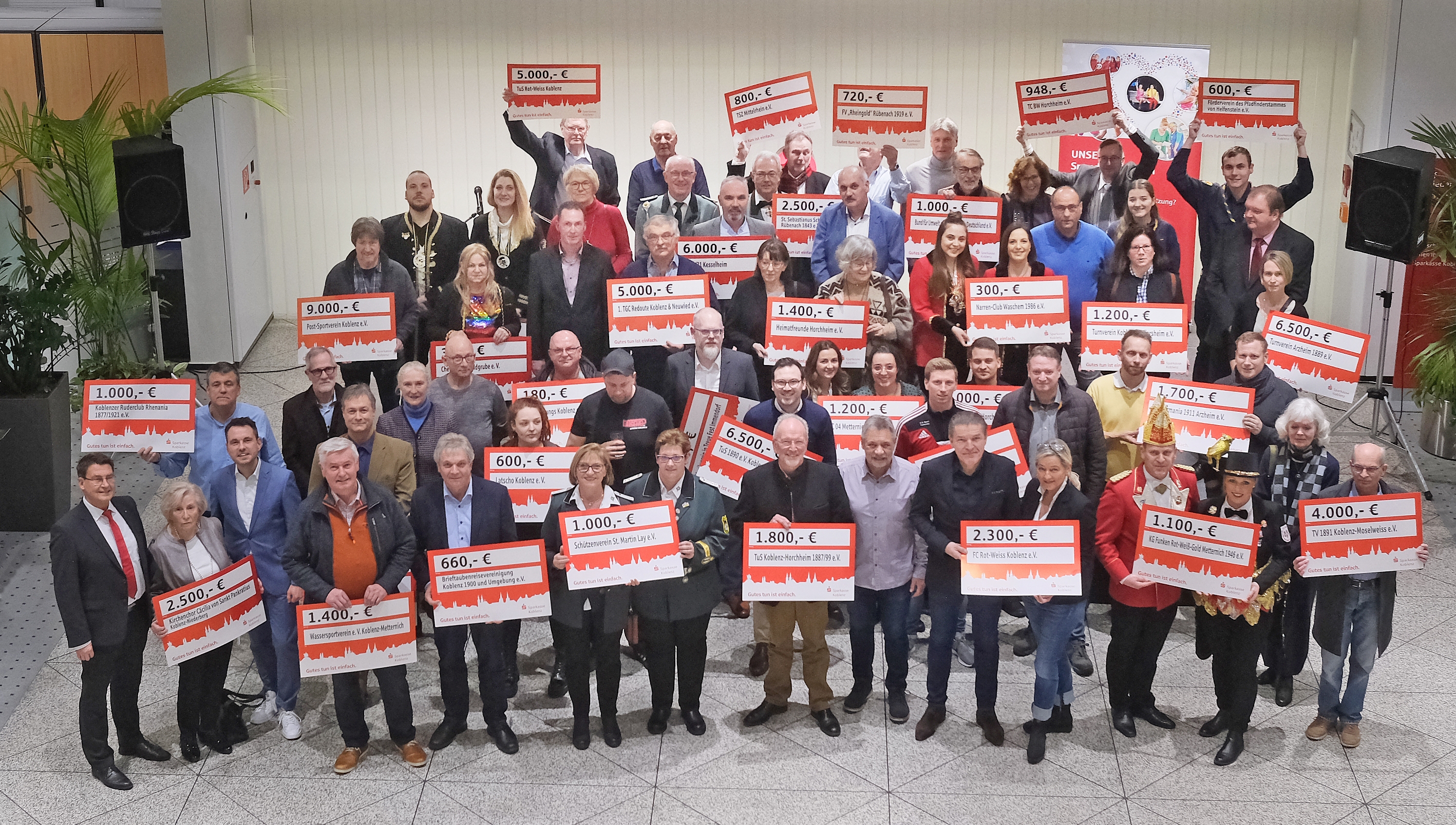 Dank eines von der Stadt Koblenz initiierten Hilfsprogramms profitierten 46 Koblenzer Vereine von insgesamt rund 100.000 Euro, die die Sparkasse Koblenz bereitgestellt hat. Im Rahmen eines kleinen Empfangs in der Hauptstelle der Sparkasse kamen am 1. Februar die Vereine zusammen, um einen symbolischen Spendenscheck entgegenzunehmen. Empfangen wurden die rund 70 Vereinsvertreter von Matthias Nester, dem Vorstandsvorsitzenden der Sparkasse Koblenz, und Oberbürgermeister David Langner.