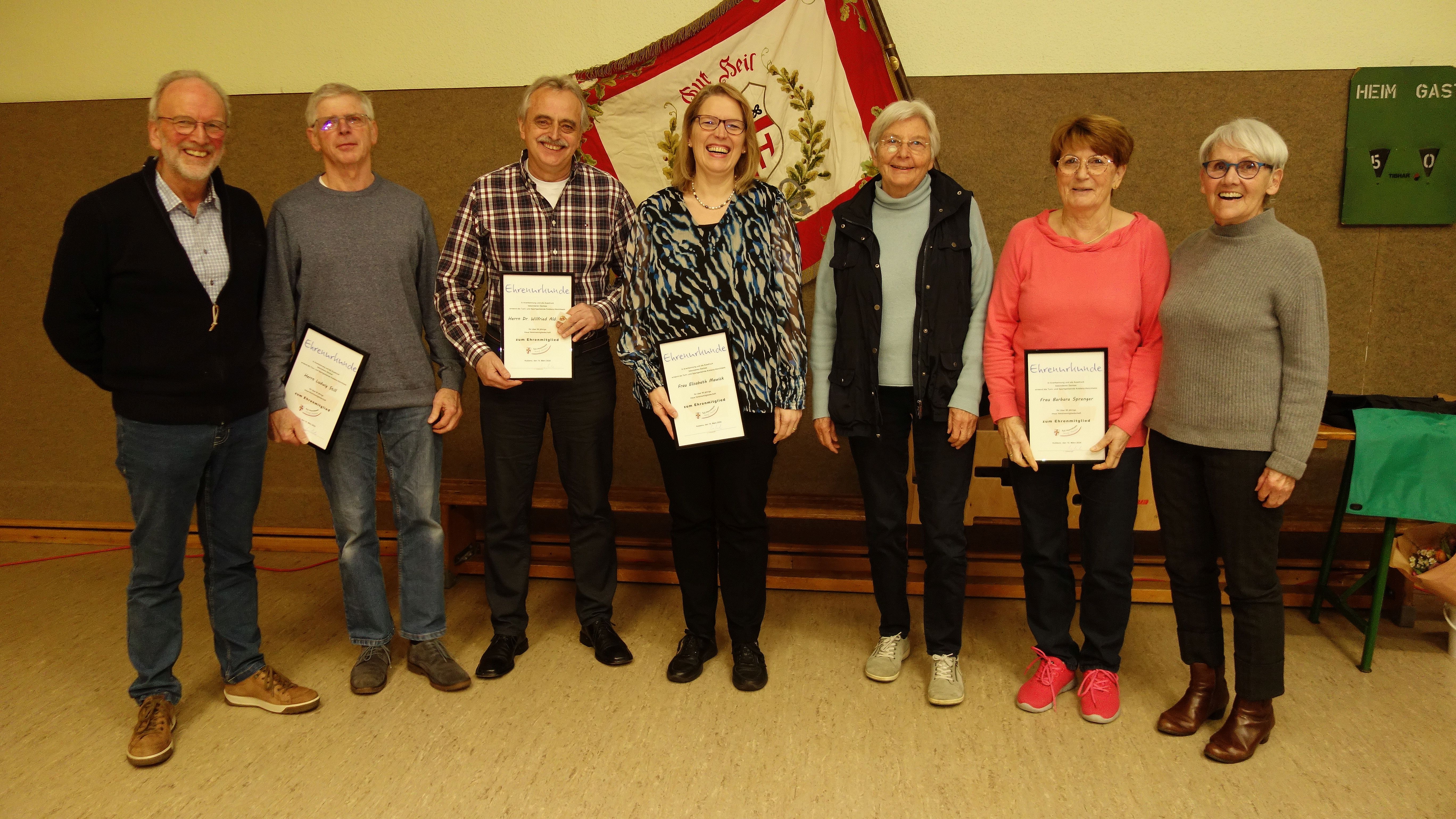 Für 50-jährige Treue zum Verein wurden Kläre Brühl, Bärbel Sprenger, Elisabeth Mawick, Ludwig Still und Dr. Wilfried Alderath durch Aushändigung einer Urkunde und der Goldenen Ehrennadel zu Ehrenmitgliedern ernannt:
